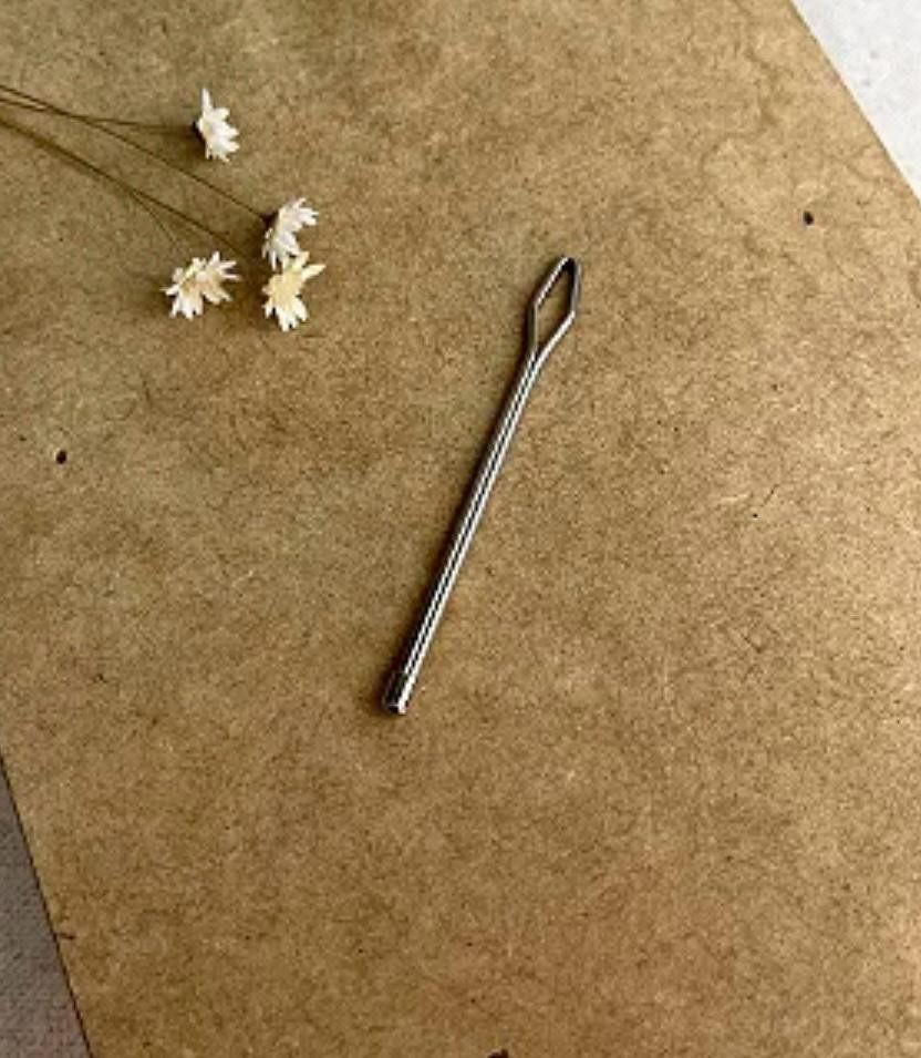 A Agulha Passador de Fio em Aço Inoxidável possui ponta arredondada e olho largo, ideal para bordar em tela e fazer acabamentos em crochê e tricô.