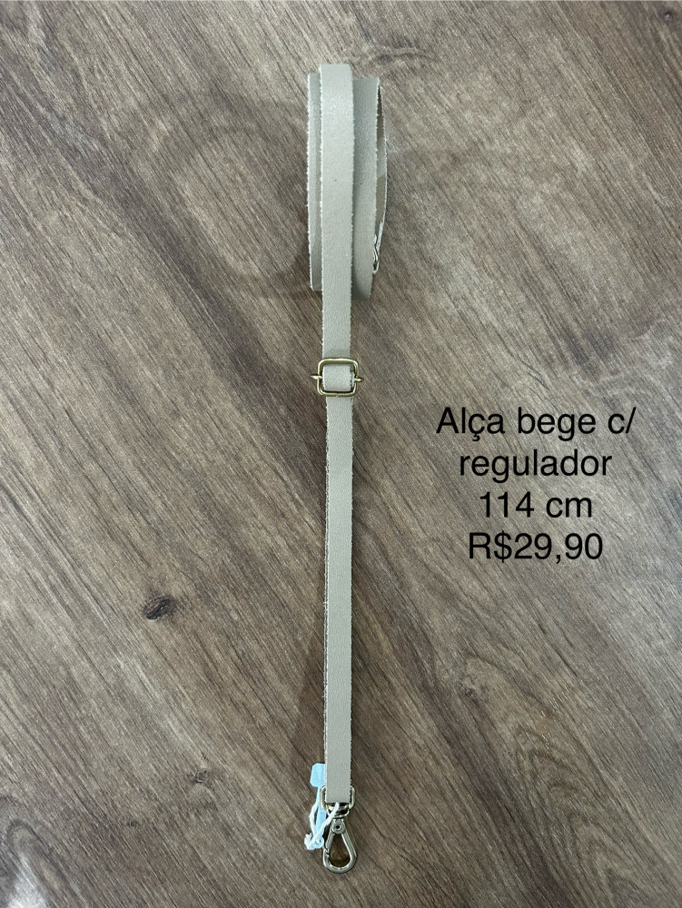 Alça couro bege com regulador - 114 cm