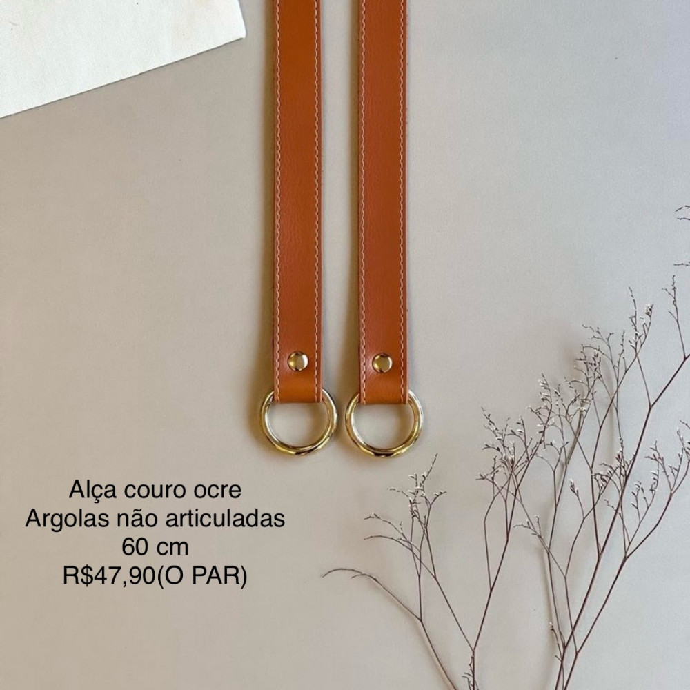Alça Couro Ocre com argolas NÃO ARTICULADAS - 60 cm - O PAR