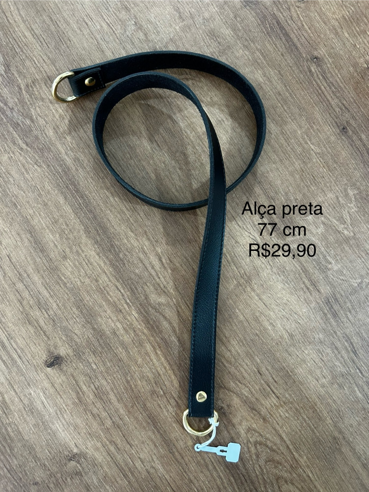 Alça couro Preta com meia lua dourada - 77 cm