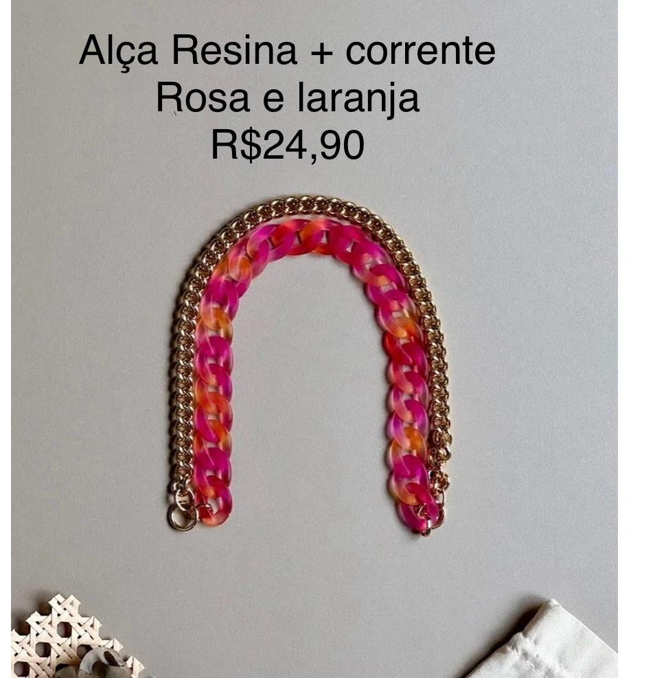 Alça Resina + corrente Rosa e Laranja - 36 cm