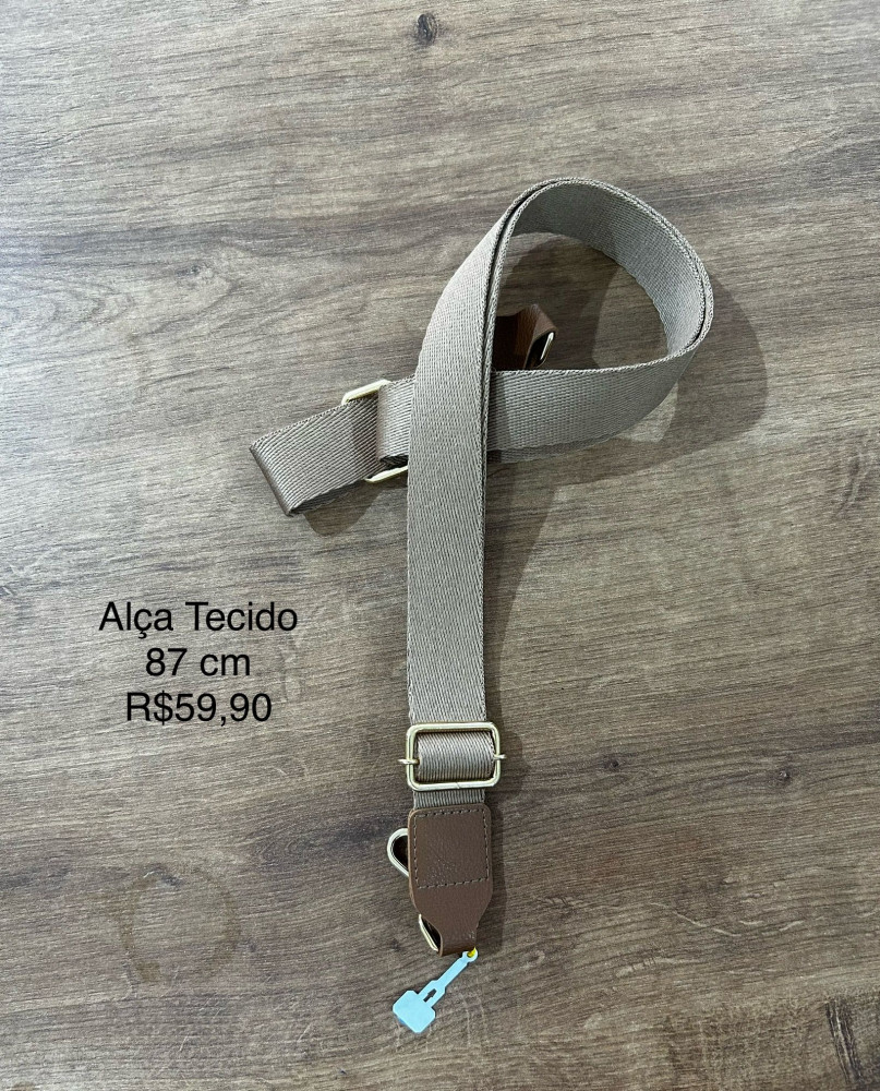 Alça Tecido c/ regulador Marrom Claro - Metal Dourado