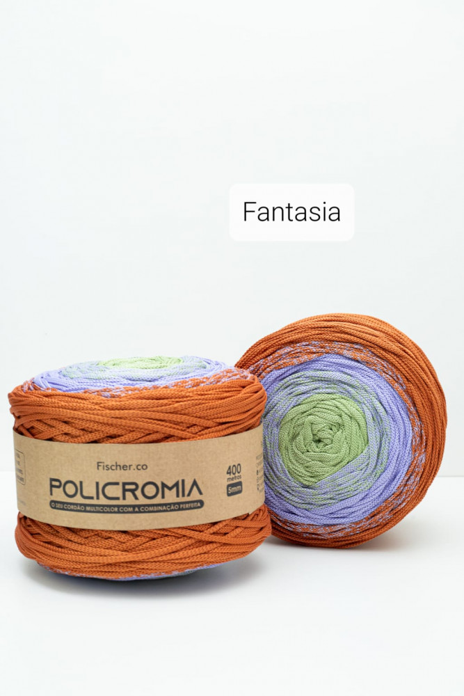 O Fio Policromia veio como uma combinação multicolor perfeita no Fio de Poliéster, em um equilíbrio perfeito entre leveza e estrutura. Sua melhor característica é sua leveza e maciez ao crochetar aliada a grande estrutura nas peças finais. Produzido com 100% Poliéster de altíssima qualidade. Um fio de extrema elegância e desenvolvido com uma cartela de cores selecionada e assertiva. Seu rendimento é de 400 metros (rendimento ideal para produção de peças grandes).